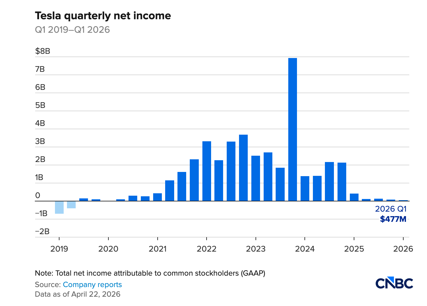 Yesterday, Tesla reported Q1 2026 earnings. Following are from CNBC, if you want to get the high level: